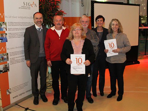 Erfolgreich gewachsen in den letzten 10 Jahren – das ist er ohne Zweifel, der Inklusionsbetrieb SIGMA an mittlerweile vier Standorten in Straubing, Eggenfelden, Mitterteich und Mitterfels mit insgesamt 96 Mitarbeiterinnen und Mitarbeitern. Hans Horn, Geschäftsführer der KJF Werkstätten, und SIGMA- Geschäftsführerin Evi Feldmeier, ihr Team und die Beschäftigten feierten mit ausgiebig mit Freunden und Netzwerkpartnern in der Joseph-von Fraunhofer-Halle in Straubing. Ein schönes Fest mit rd. 120 Gästen: herzlich, fröhlich und geprägt vom Dank an alle diejenigen, die mitgeholfen haben, dass sich die SIGMA so gut entwickelt hat.